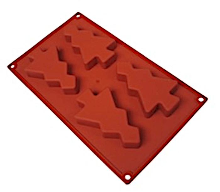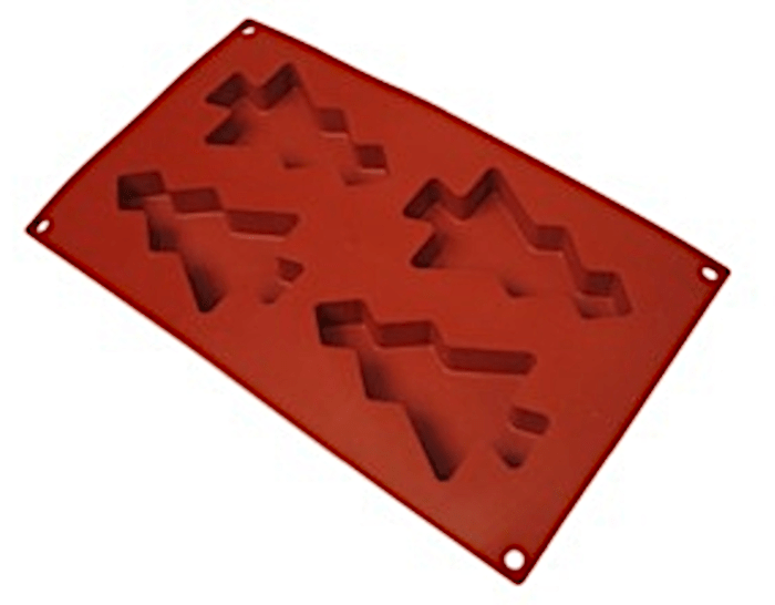 Profesjonalna forma silikonowa do wypieku i gastronomii choinki, wymiary zewnętrzne 300 x 175 mm, 4 gniazda h – 20 mm.