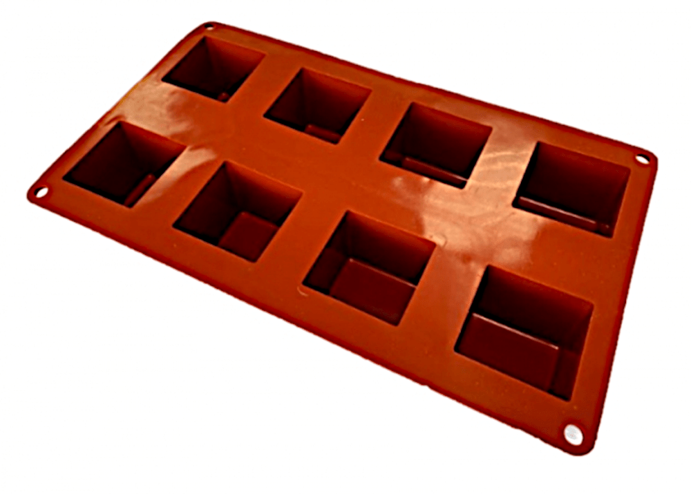 Profesjonalna forma silikonowa do wypieku ciastek, wymiary zewnętrzne 300 x 175 mm, 8 gniazd 50 x 50 mm, h – 50 mm.