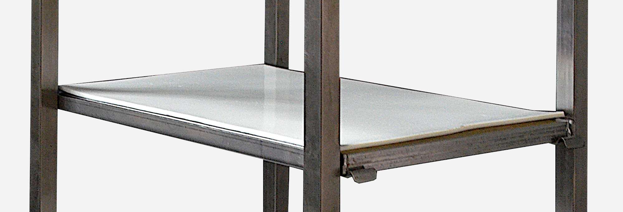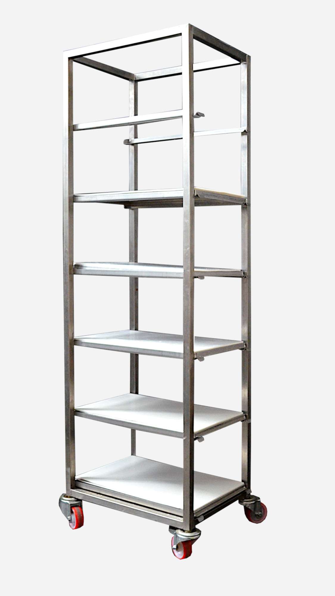 Konstrukcja wózka została dopracowana z myślą o ergonomii i higienie. Co istotne, solidne kółka, w tym jedno z hamulcem, ułatwiają manewrowanie i zapewniają stabilność podczas postoju. Ponadto sześć półek pozwala na przechowywanie i transport większej liczby blatów w jednym cyklu, co oszczędza czas i ogranicza ryzyko uszkodzenia wyrobów.